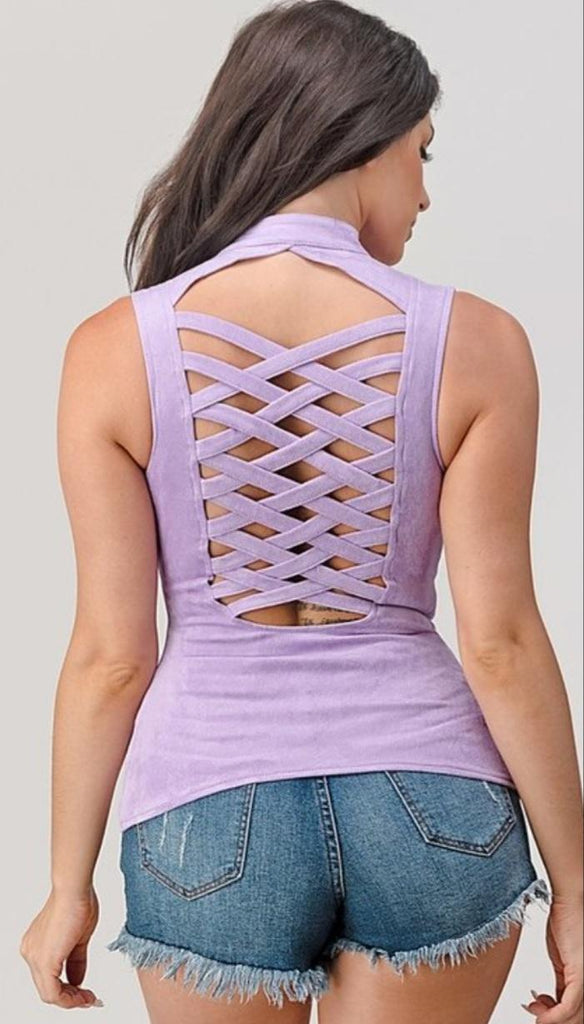 Suede Sleeveless Cross Cut Back Top