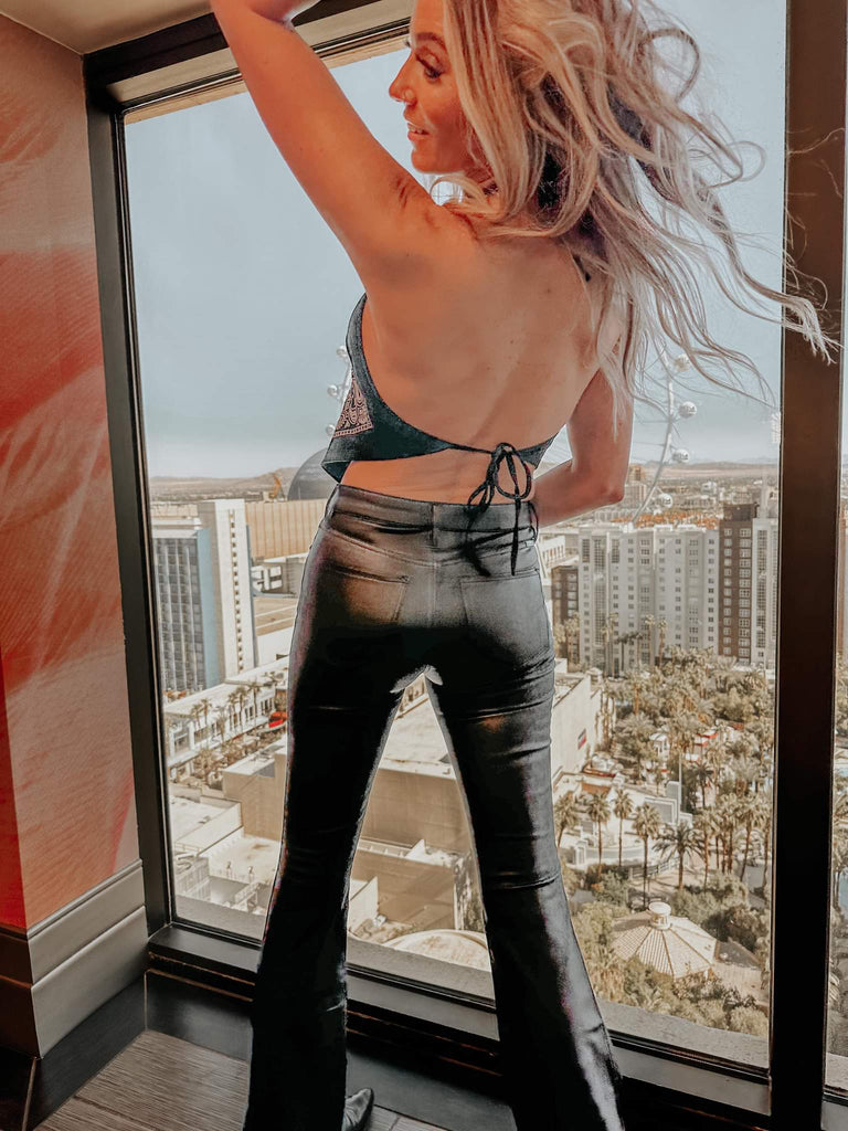 Black Faux Leather Corset Halter